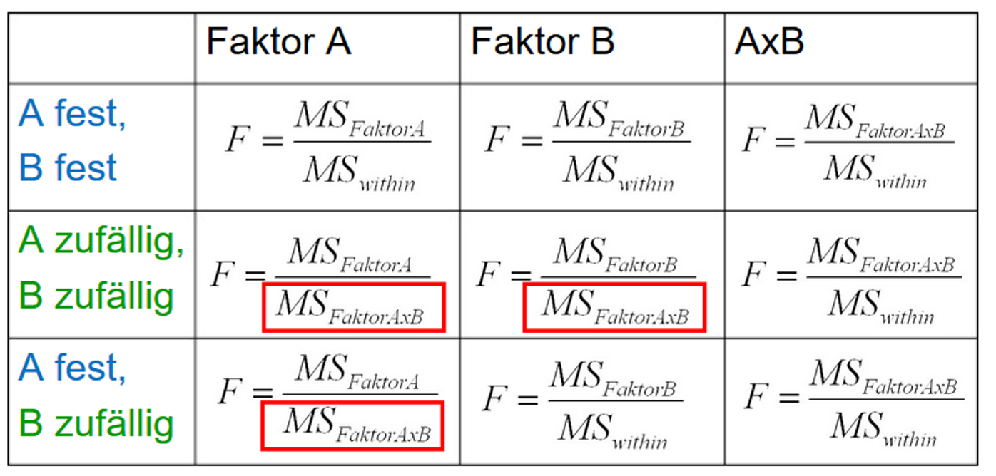 A fest & B zufällig Wechselwirkungsvarianz Fehlervarianz Fehlervarianz