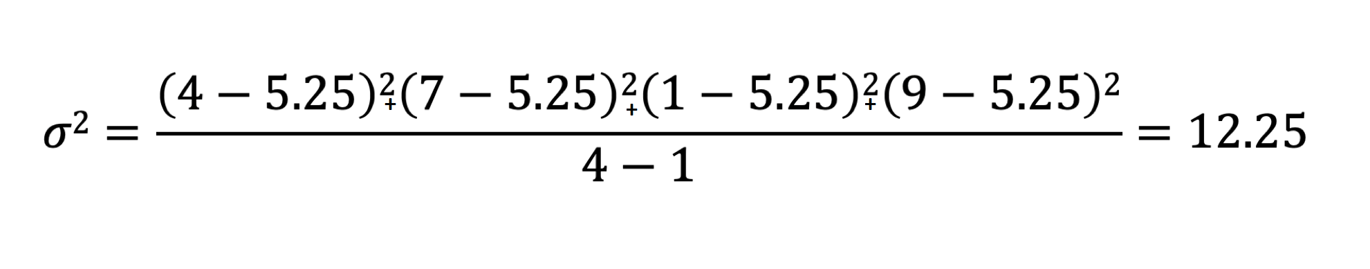 x1 = 4, x2 = 7, x3 = 1, x4 = 9 -> Mittelwert: 5,25