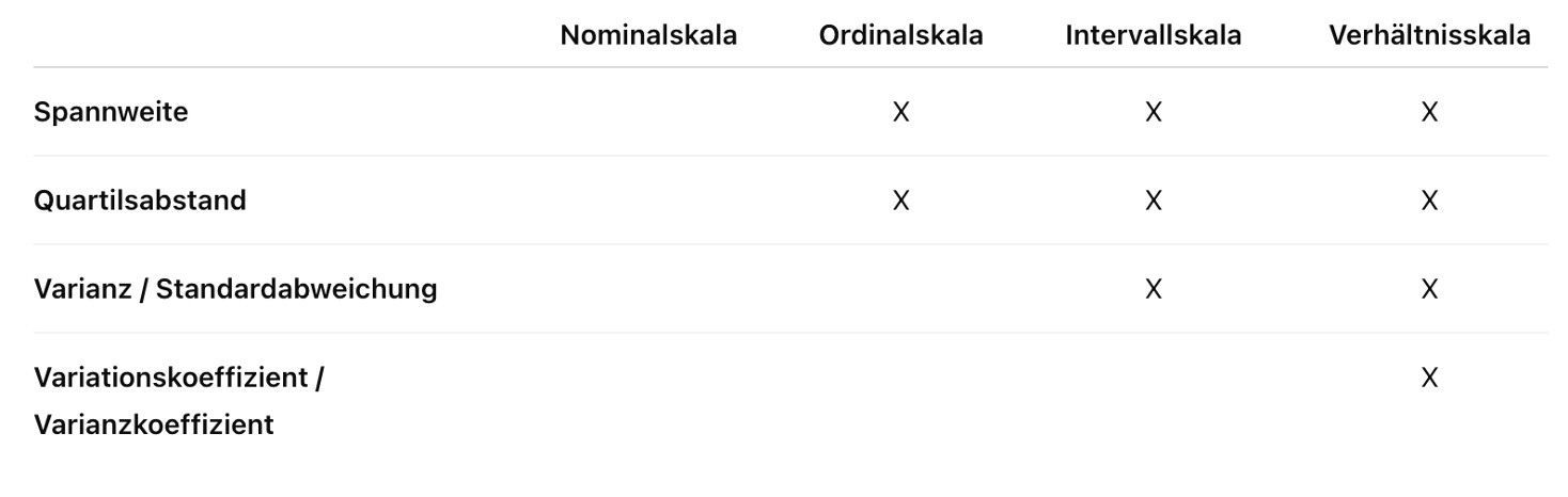 Es handelt sich um die Variabilität der Merkmalsausprägungen. Beide Maße setzen theoretisch ein metrisches Skalenniveau voraus.
