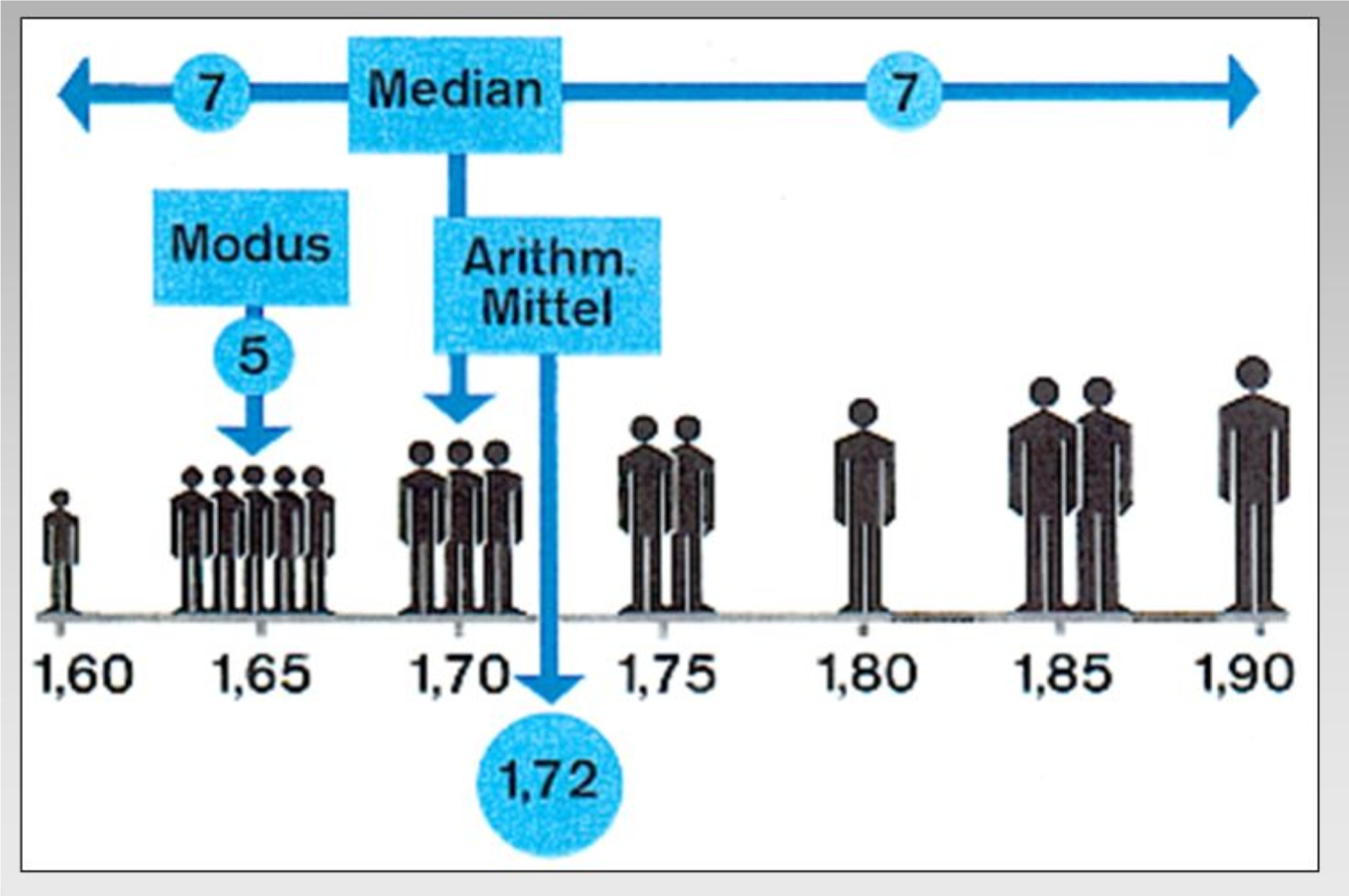 Der Median, auch als Zentralwert oder "median" bezeichnet, teilt die Stichprobe in zwei gleich große Hälften. Es handelt sich um das 50%-Quantil der Verteilung einer Variablen. Es gibt genauso viele Werte unterhalb wie oberhalb dieses Wertes. Voraussetzung ist mindestens ein ordinales Skalenniveau.